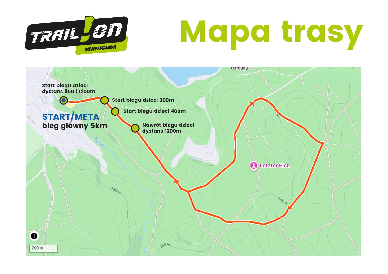 3) Biegi dzieci – dystans 800m – START/META – brama główna zawodów, nawrót w punkcie startu biegu 400m